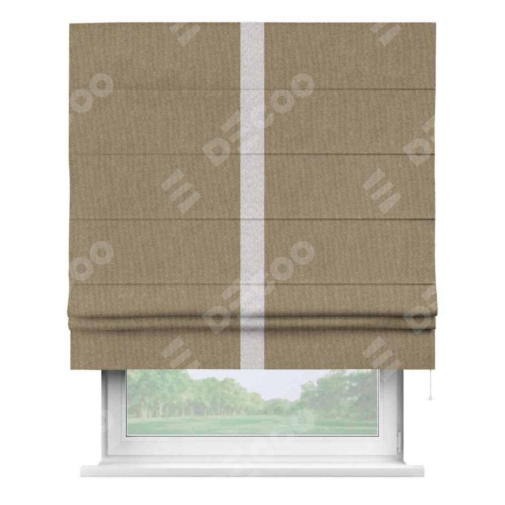 Римская штора «Кортин» для проема, лён димаут тёмно-бежевый с кантом Хайвэй