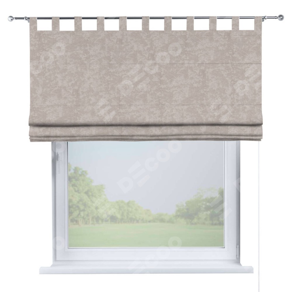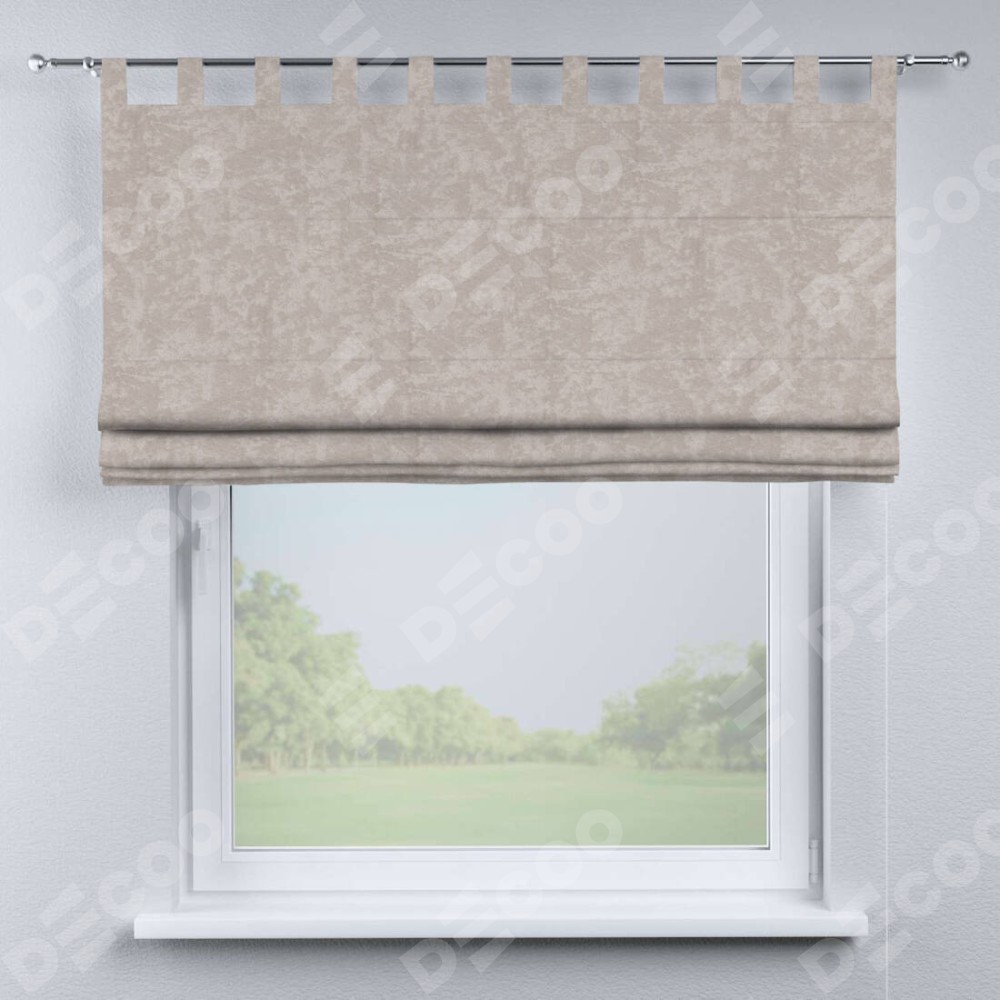 Римская штора производителя «Cortin», используется для проёма, пошита из ткани софт мрамор пудровый, артикул ткани 93578. Данная модель пошита на петлях, комплектуется на выбор круглым карнизом и подходит для монтажа на стену. Римская штора на петлях имеет простую систему регулировки высоты, отличительным преимуществом данной модели является простой способ монтажа. Достаточно повесить ее на трубу и штора готова!