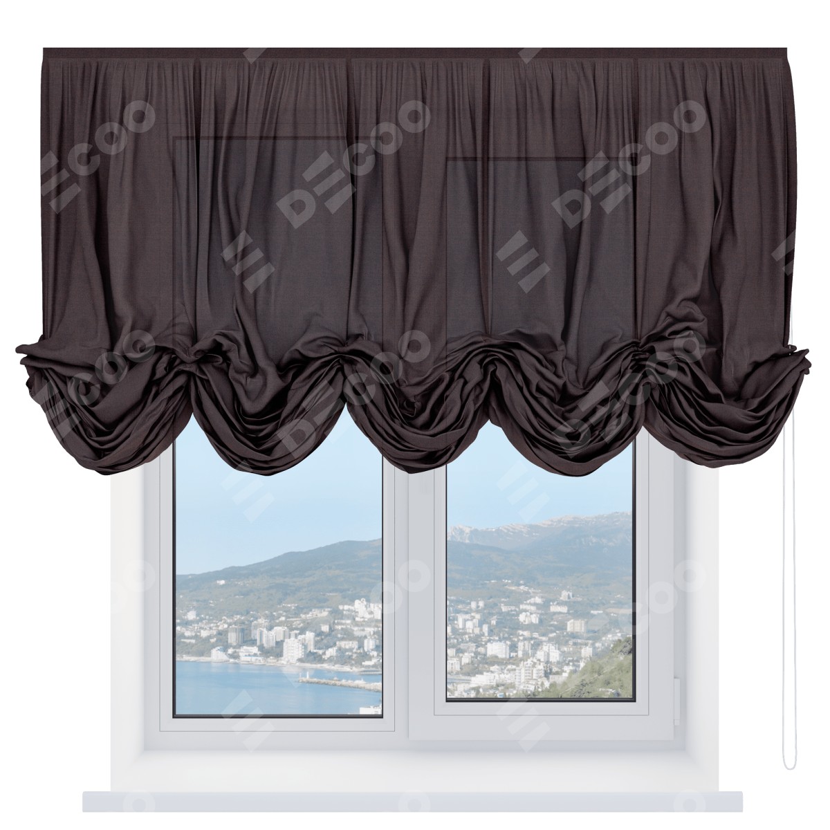 Австрийская штора производителя «Cortin», используется для проёма, пошита из ткани лён коричневый, артикул ткани 53443. Имеет универсальный механизм и подходит для монтажа: на потолок и на стену.