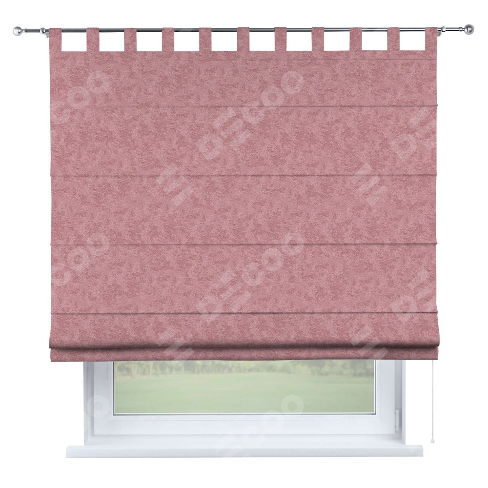 Римская штора производителя «Cortin», используется для проёма, пошита из ткани софт мрамор розовый, артикул ткани 93584. Данная модель пошита на петлях, комплектуется на выбор круглым карнизом и подходит для монтажа на стену. Римская штора на петлях имеет простую систему регулировки высоты, отличительным преимуществом данной модели является простой способ монтажа. Достаточно повесить ее на трубу и штора готова!
