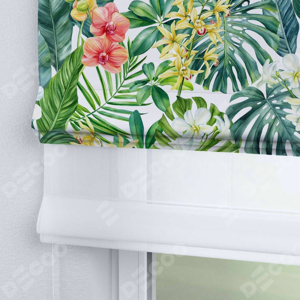 Римская штора «Кортин» день-ночь «Орхидеи в тропиках»