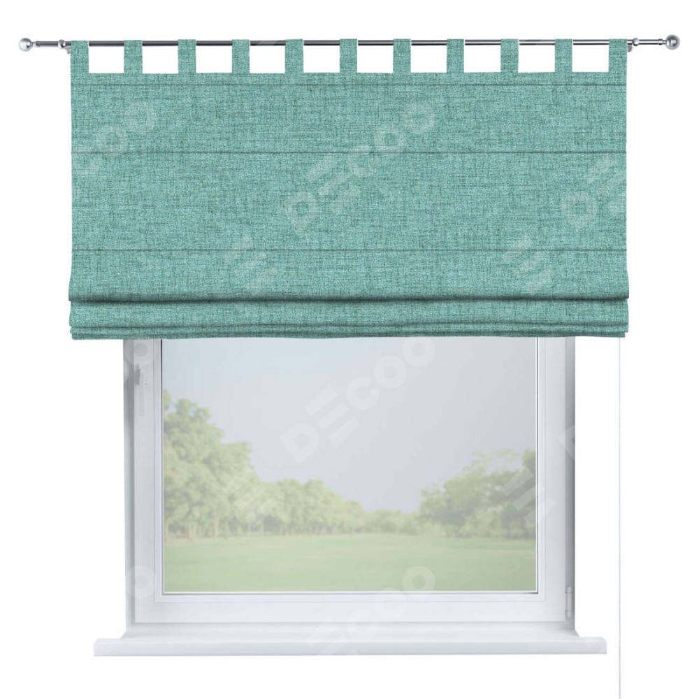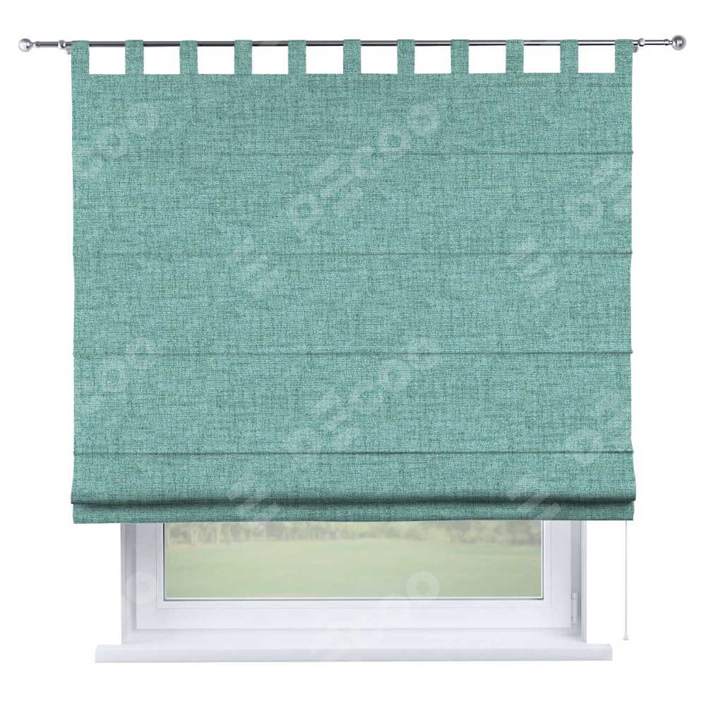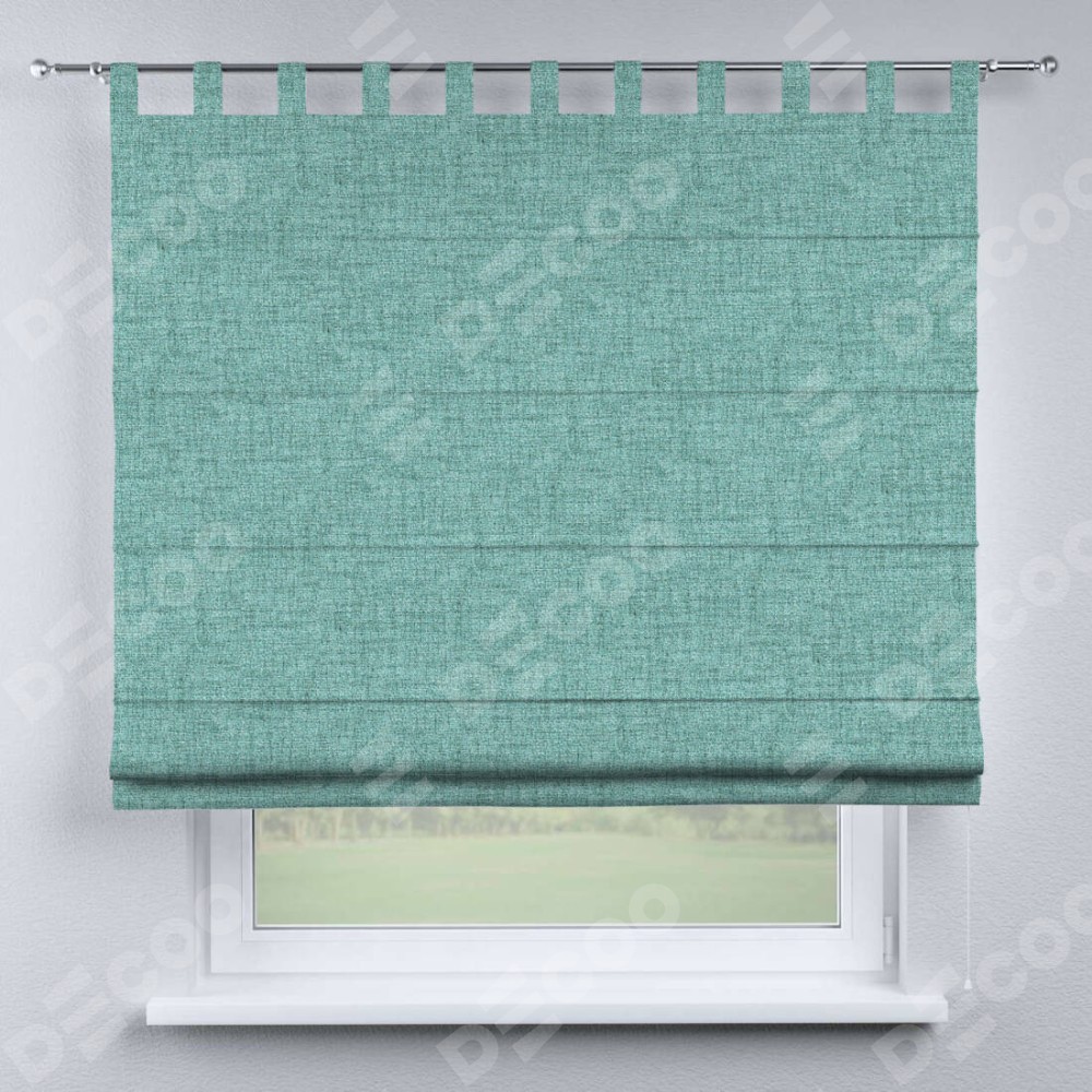 Римская штора производителя «Cortin», используется для проёма, пошита из ткани рогожка димаут аквамариновый крайола, артикул ткани 91023. Данная модель пошита на петлях, комплектуется на выбор круглым карнизом и подходит для монтажа на стену. Римская штора на петлях имеет простую систему регулировки высоты, отличительным преимуществом данной модели является простой способ монтажа. Достаточно повесить ее на трубу и штора готова!