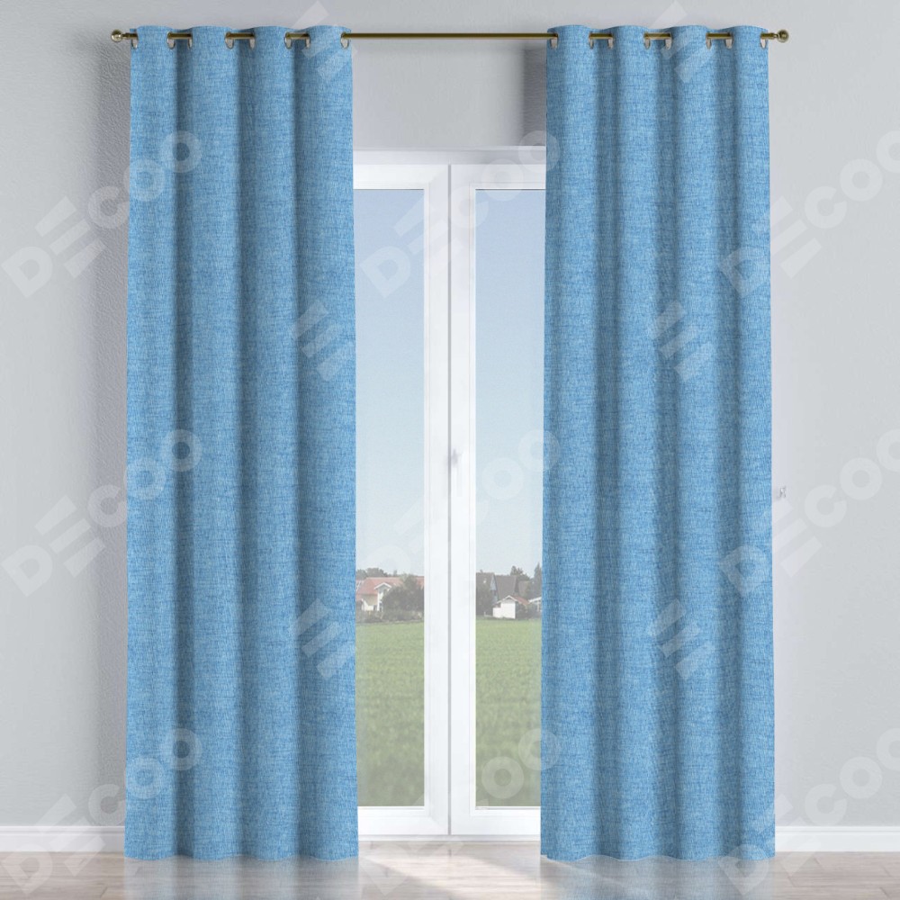 Комплект прямых штор, от производителя «Cortin», пошиты из ткани рогожка димаут голубой, артикул ткани 91025. Данная модель пошита на люверсах, комплектуется на выбор круглым карнизом и подходит для монтажа на стену или потолок. Прямые шторы на люверсах шьются по стандарту с коэффициентом 1/2 (на 100 см. ширины проёма 200 см. ширины ткани), отличительным преимуществом данной модели является простой способ монтажа. Достаточно повесить ее на трубу и штора готова!