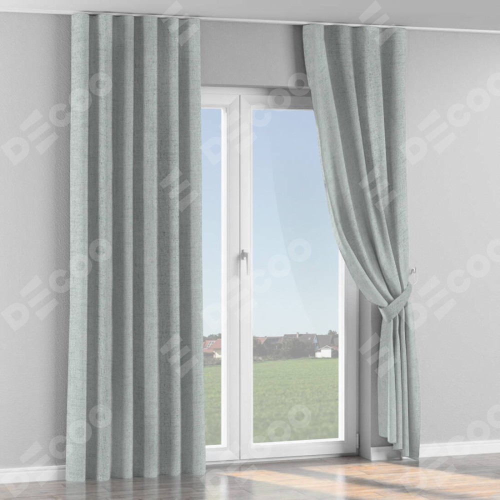 Комплект прямых штор, от производителя «Cortin», пошиты из ткани рогожка димаут серый, артикул ткани 91027. С изнаночной стороны в верхней части штор пристрачивается шторная лента с декоративными складками «Волна». Для создания элегантных складок прямые шторы шьются по стандарту с коэффициентом 1:2 (на 100 см. ширины проёма 200 см. ширины ткани).