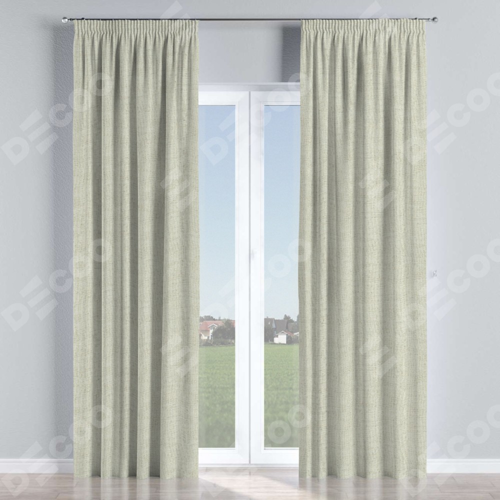 Комплект прямых штор, от производителя «Cortin», пошиты из ткани рогожка димаут серо-бежевый, артикул ткани 91014. С изнаночной стороны в верхней части штор пристрачивается шторная лента с декоративными складками «Карандаш». Для создания элегантных складок прямые шторы шьются по стандарту с коэффициентом 1:2 (на 100 см. ширины проёма 200 см. ширины ткани).