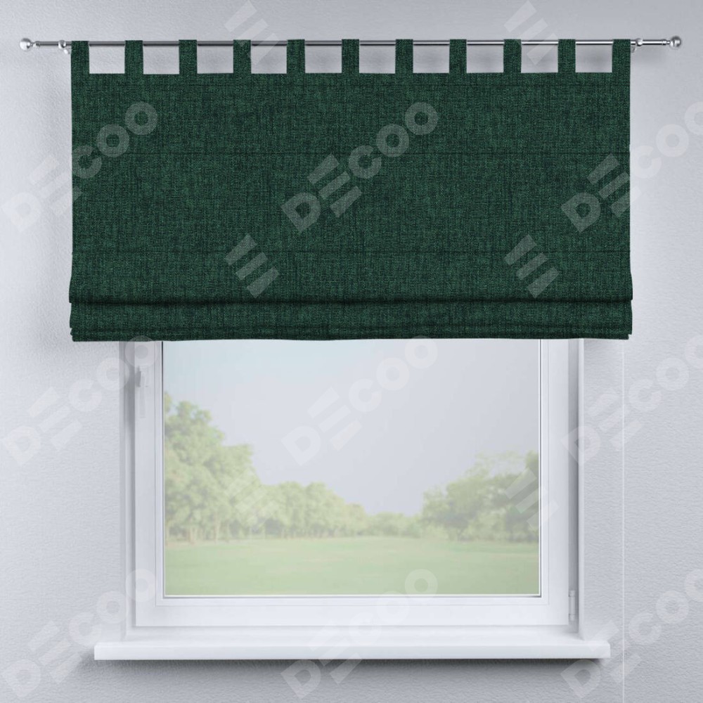 Римская штора «Кортин», рогожка димаут тёмно-зелёный, на петлях