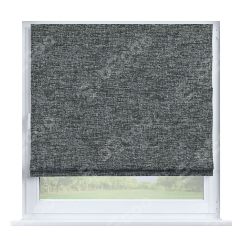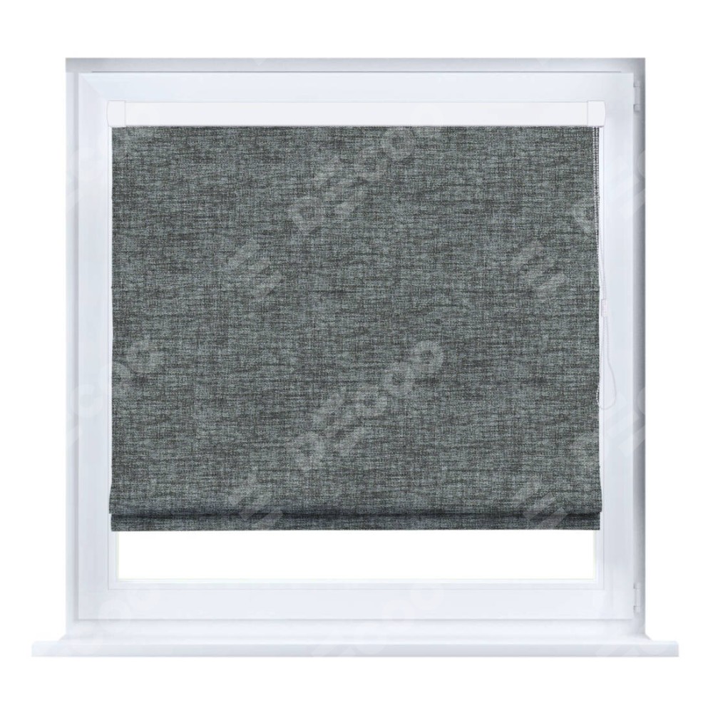 Римская штора производителя «Cortin», устанавливается на створку окна, пошита из ткани рогожка димаут тёмно-серый, артикул 91029. Штора шьётся по индивидуальным размерам, для данного типа римской шторы возможная ширина от 35 до 150 см., высота до 250 см.