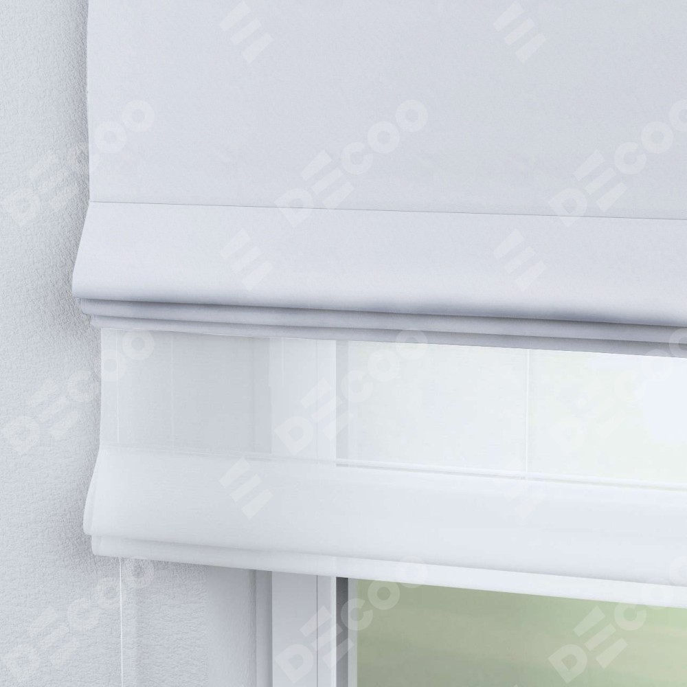 Двойная римская штора «День-ночь» от производителя Cortin предназначена для использования в проёмах. Эта штора уникальна тем, что состоит из двух полотен. На лицевой стороне находится вельвет белоснежный (артикул: 92698), обеспечивающий эффективное затемнение. В комплект также входит вторая ткань — легкий белый тюль (артикул: V-01), который добавляет изящества и легкости оформлению окна. Кроме того, доступны и другие разновидности ткани тюль, выбор которых доступен по ссылке .