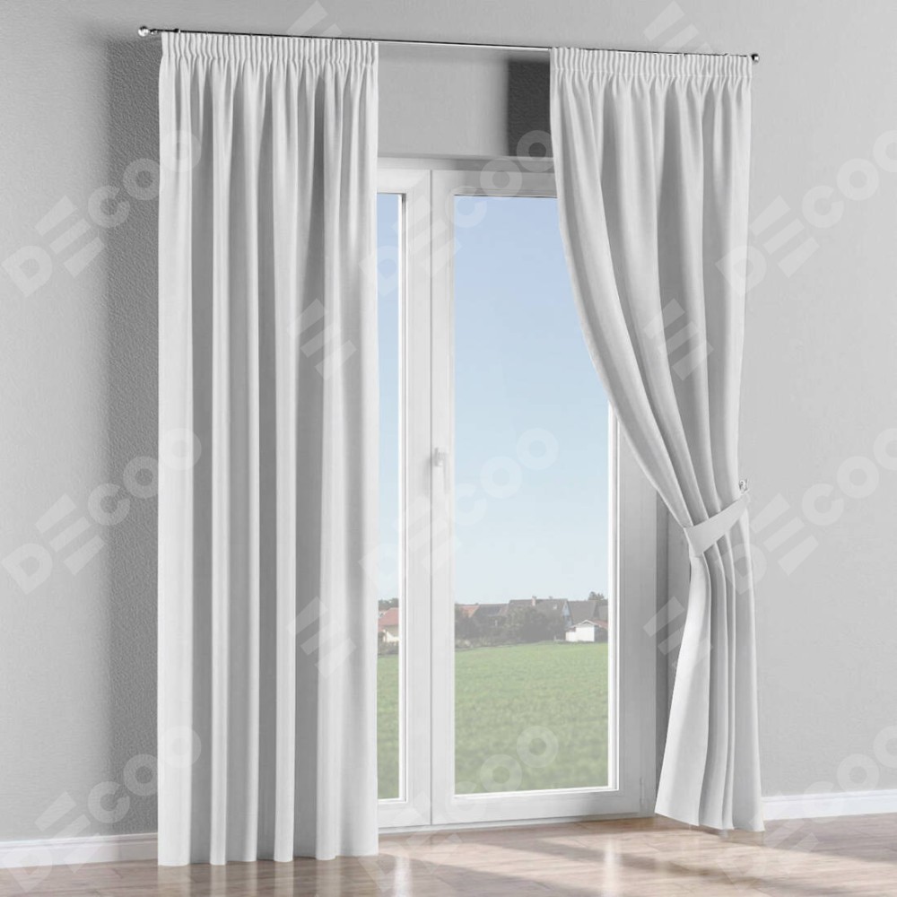 Комплект прямых штор, от производителя «Cortin», пошиты из ткани вельвет белоснежный, артикул ткани 92698. С изнаночной стороны в верхней части штор пристрачивается шторная лента с декоративными складками «Карандаш». Для создания элегантных складок прямые шторы шьются по стандарту с коэффициентом 1:2 (на 100 см. ширины проёма 200 см. ширины ткани).