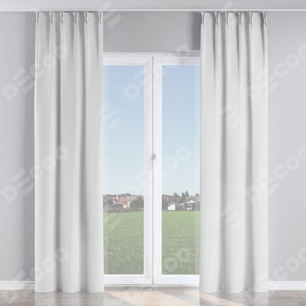 Комплект прямых штор, от производителя «Cortin», пошиты из ткани вельвет белоснежный, артикул ткани 92698. С изнаночной стороны в верхней части штор пристрачивается шторная лента с декоративными складками «Кустик». Для создания элегантных складок прямые шторы шьются по стандарту с коэффициентом 1:2 (на 100 см. ширины проёма 200 см. ширины ткани).