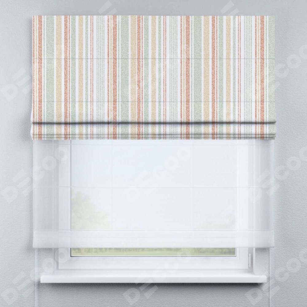 Одно из ключевых преимуществ двойной римской шторы «День-ночь» — это её функциональность. При поднятии основной шторы проём не оголяется благодаря наличию второй ткани из тюля. Это создает дополнительный уровень уюта и комфорта в помещении. Кроме того, доступен выбор из различных видов тканей тюля, позволяющий настроить штору в соответствии с индивидуальными предпочтениями.