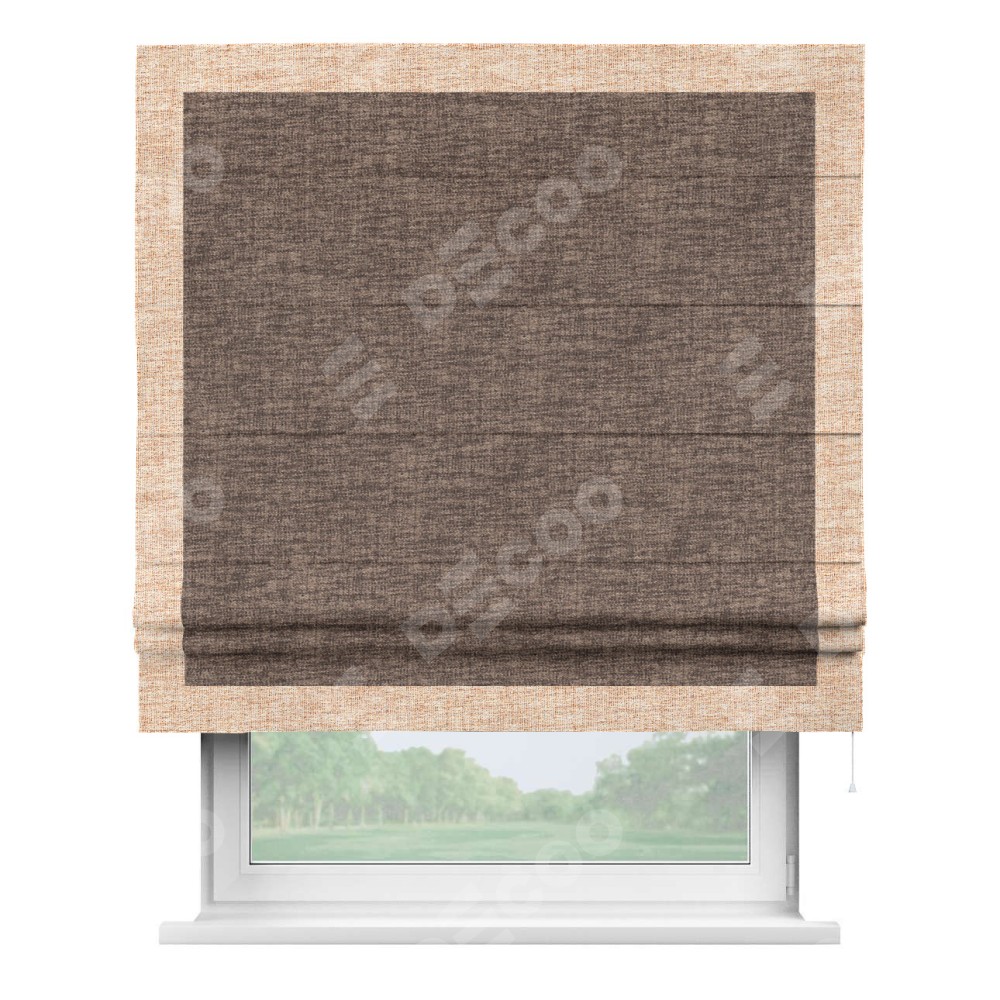 Римская штора «Кортин» для проёма, рогожка димаут коричневый, с кантом Чесс