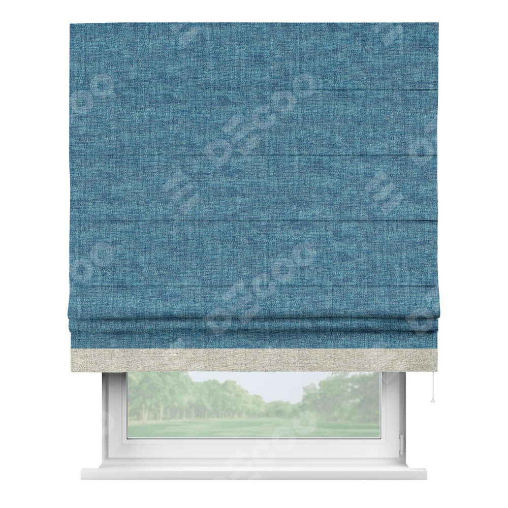 Римская штора «Кортин» для проёма, рогожка димаут лазурно-синий, с кантом Джестер