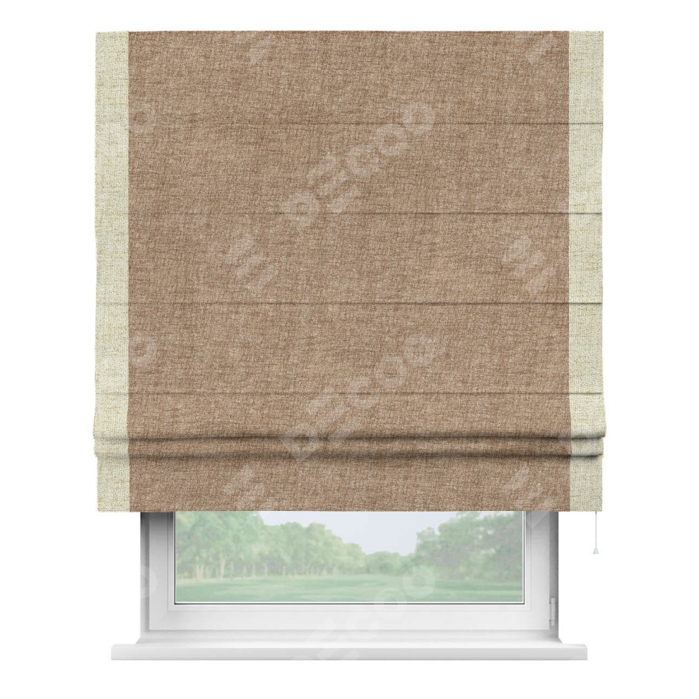 Римская штора «Кортин» для проёма, рогожка димаут светло-коричневый, с кантом Стрим Дуо