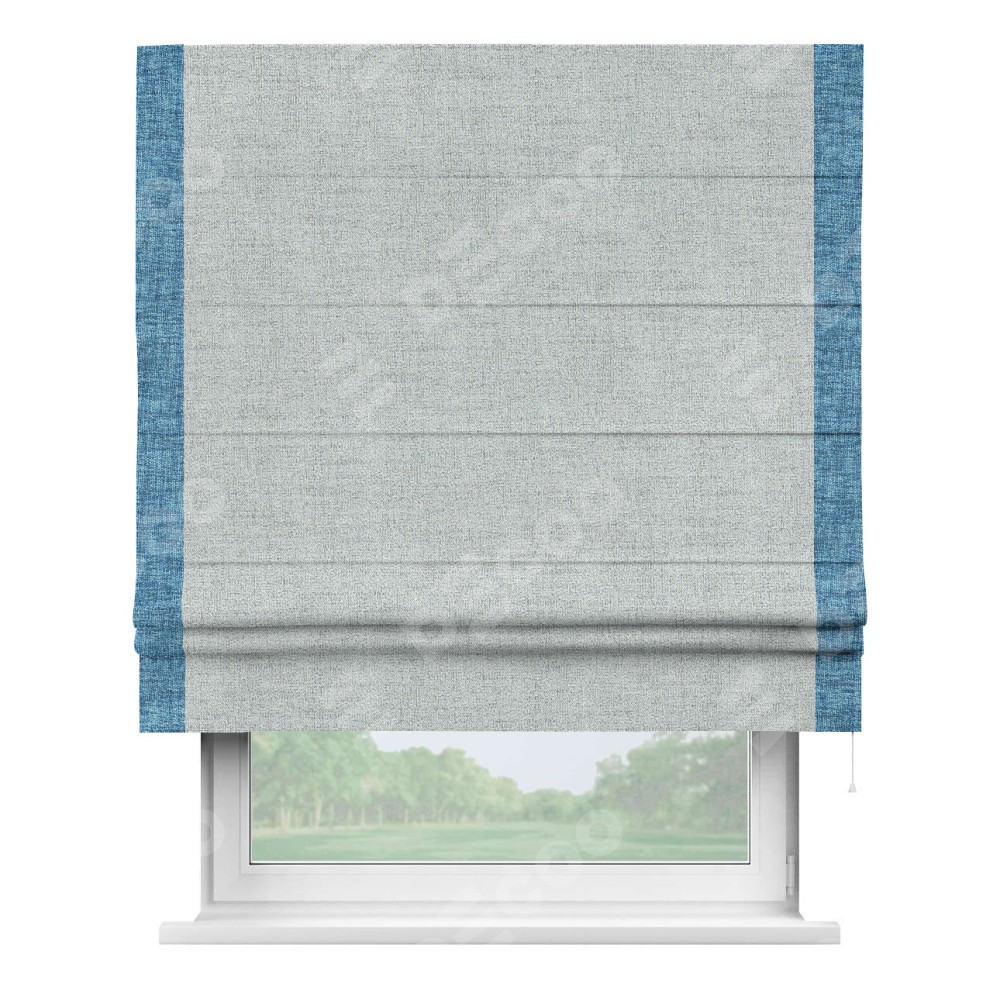 Римская штора пошита из ткани рогожка димаут серый, артикул: 91027, с отделкой кантом «Стрим Дуо» выделяется наличием кантов по обоим бокам шторы, слева и справа. Этот дизайн придает шторе аккуратный и завершенный вид, акцентируя вертикальные линии и визуально вытягивая окно в высоту. Отделка кантом по бокам не только украшает штору, но и служит практической функцией, укрепляя края и продлевая срок службы изделия.