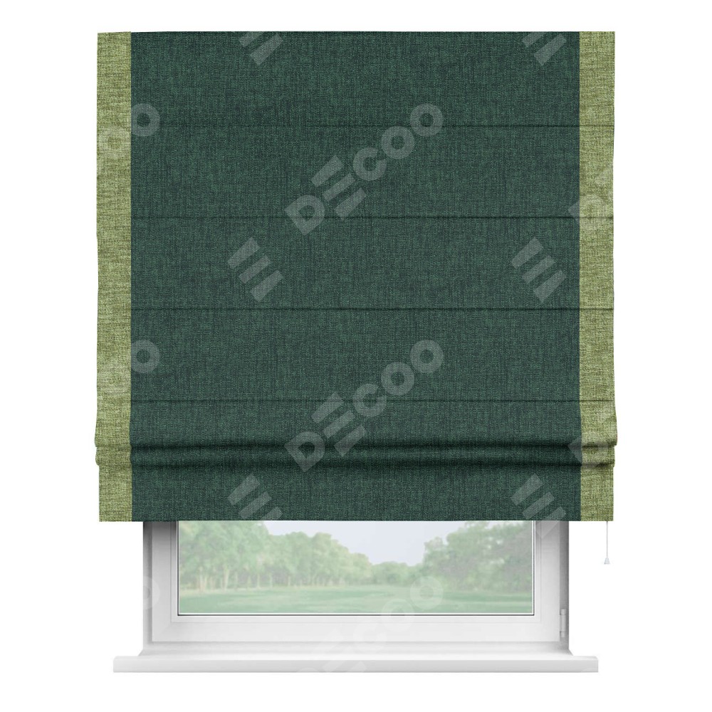 Римская штора «Кортин» для проёма, рогожка димаут тёмно-зелёный, с кантом Стрим Дуо