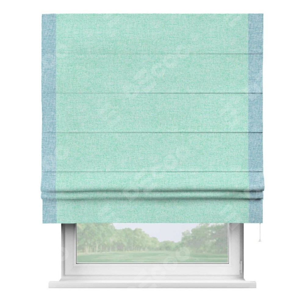 Римская штора «Кортин» для проёма, лён кашемир мятный, с кантом Стрим Дуо