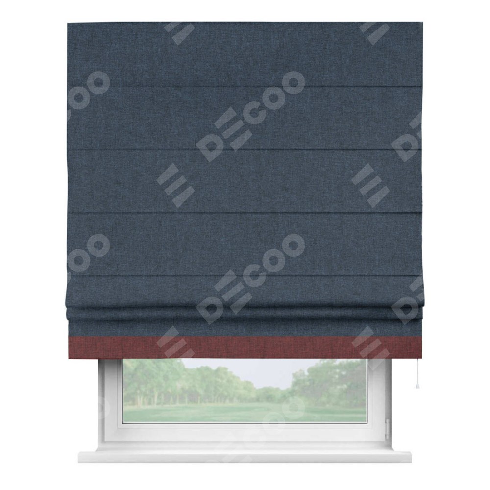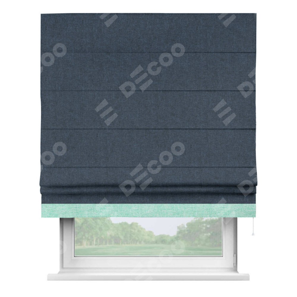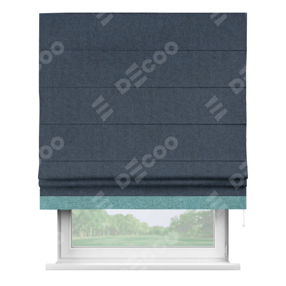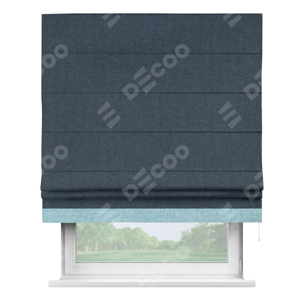 Римская штора «Кортин» для проёма, лён кашемир синий, с кантом Джестер