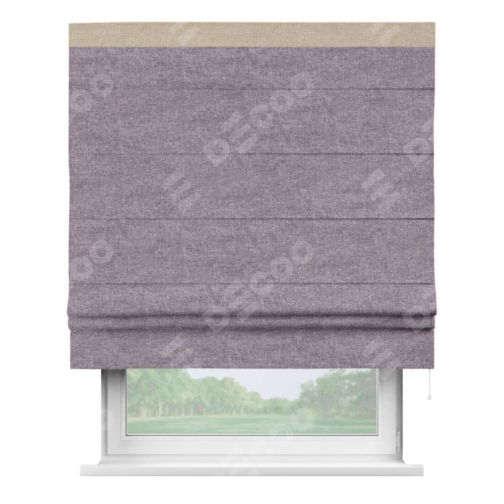Римская штора «Кортин» для проёма, лён кашемир фиолетовый, с кантом Кинг