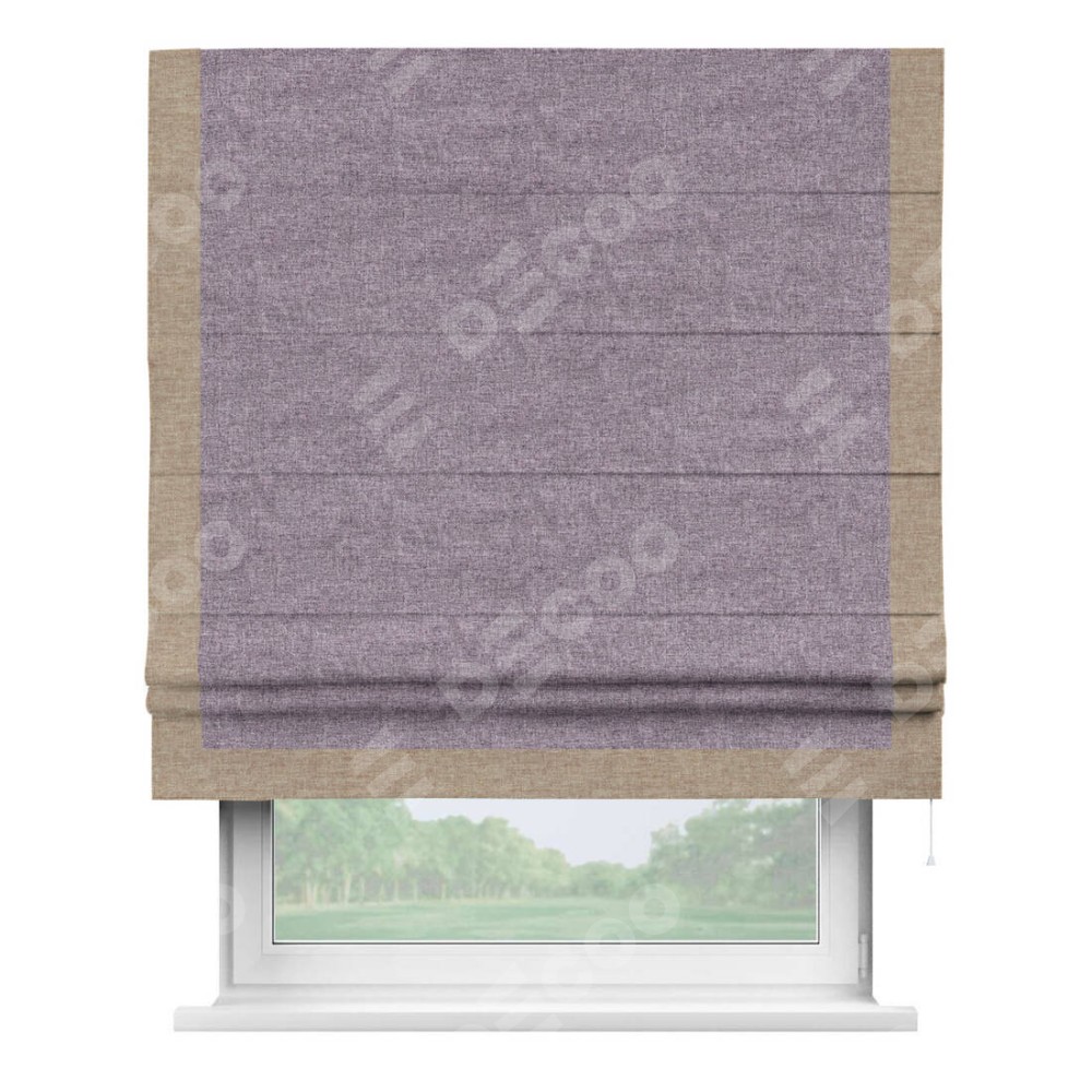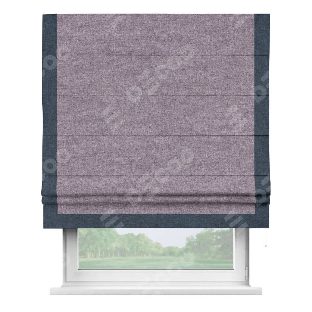 Римская штора с отделкой кантом «Виктория», пошита из ткани лён кашемир фиолетовый, артикул: 17211. представляет собой элегантное решение для оконного оформления. Кант по бокам и снизу шторы добавляет изысканности и аккуратности внешнему виду, подчеркивая линии и форму шторы. Этот элемент декора не только украшает, но и выполняет практическую функцию, защищая края ткани от износа. Кант может быть выполнен в контрастном или гармонирующем цвете, что позволяет добиться различных стилевых эффектов и легко вписать штору в интерьер комнаты.