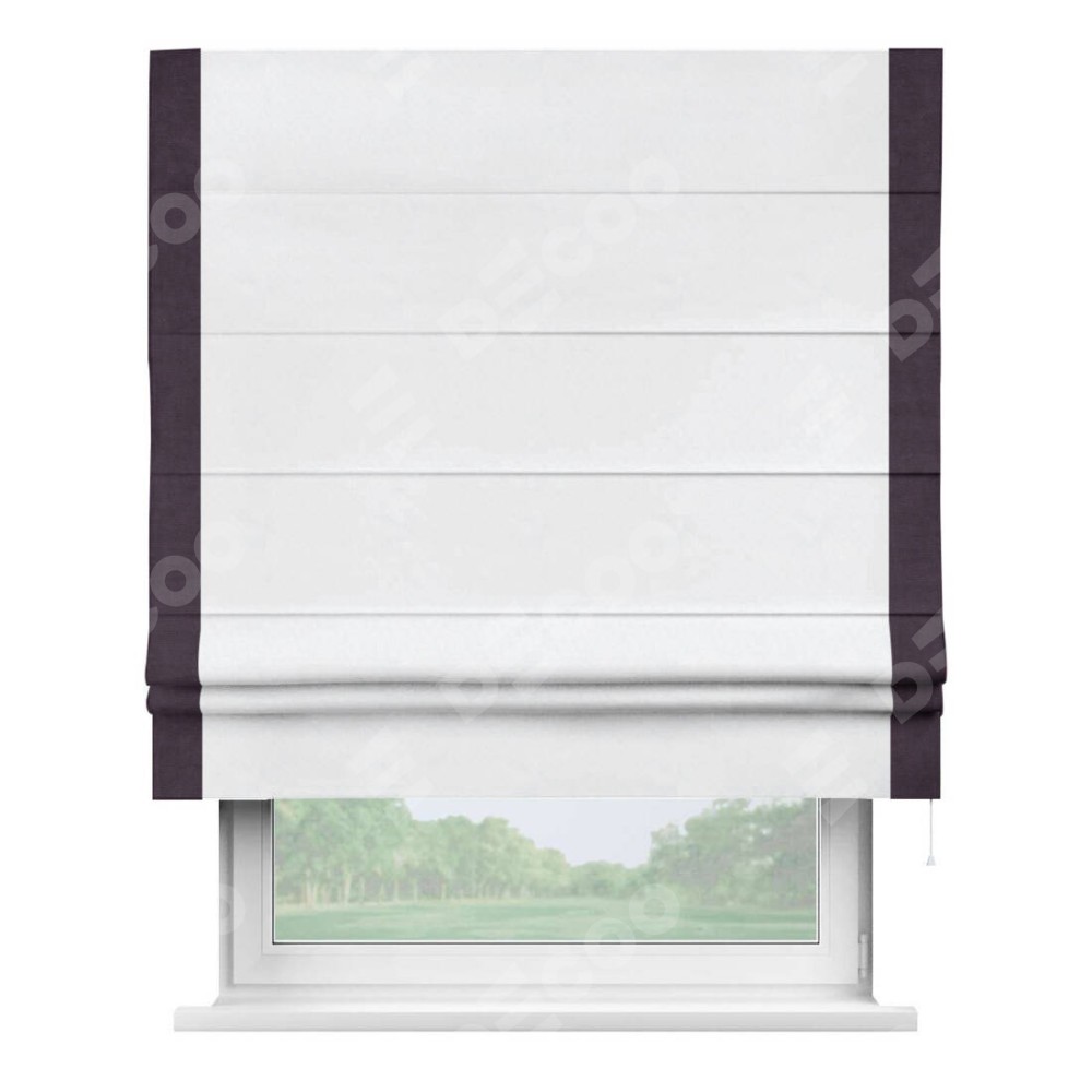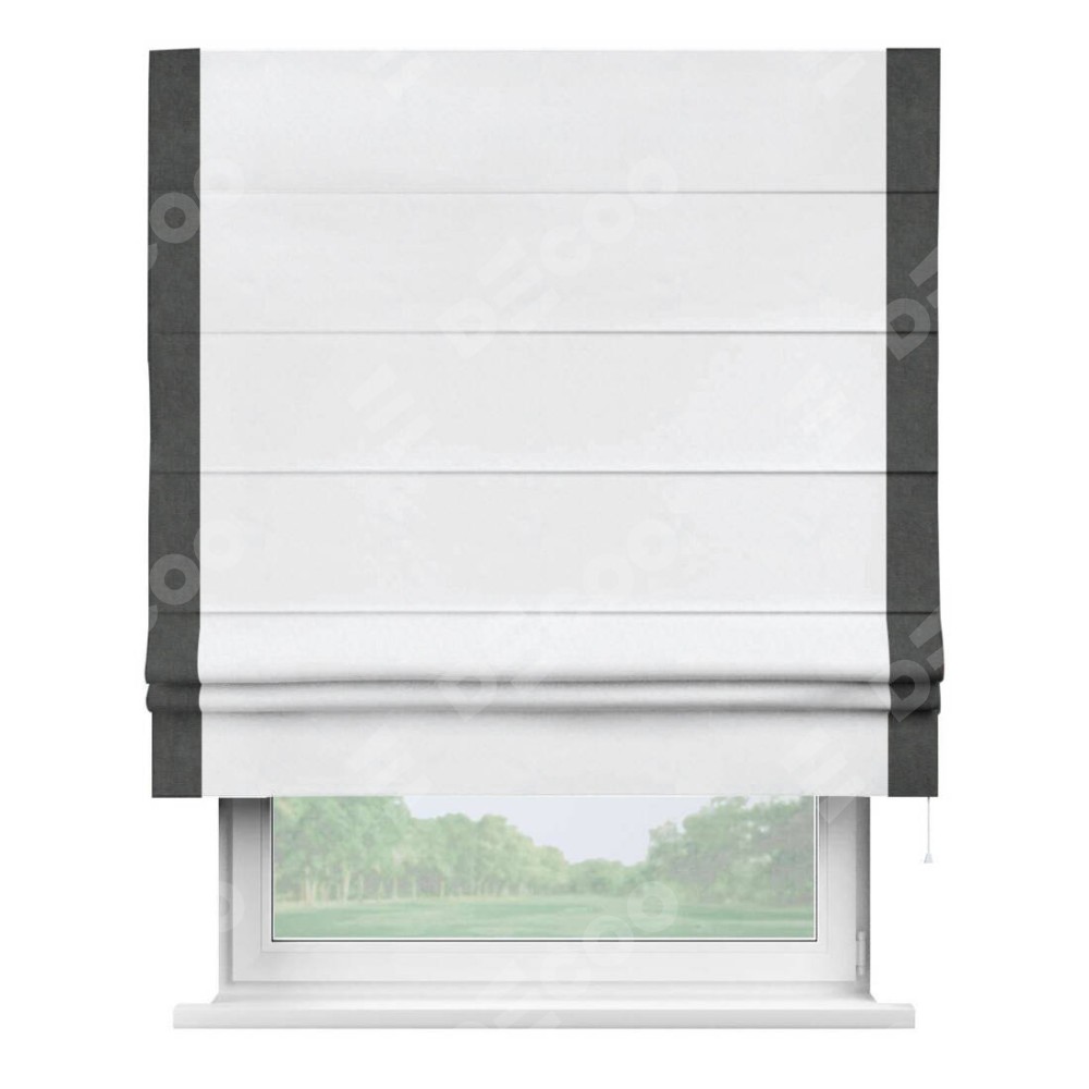 Римская штора «Кортин» для проёма, вельвет белоснежный с кантом Стрим Дуо