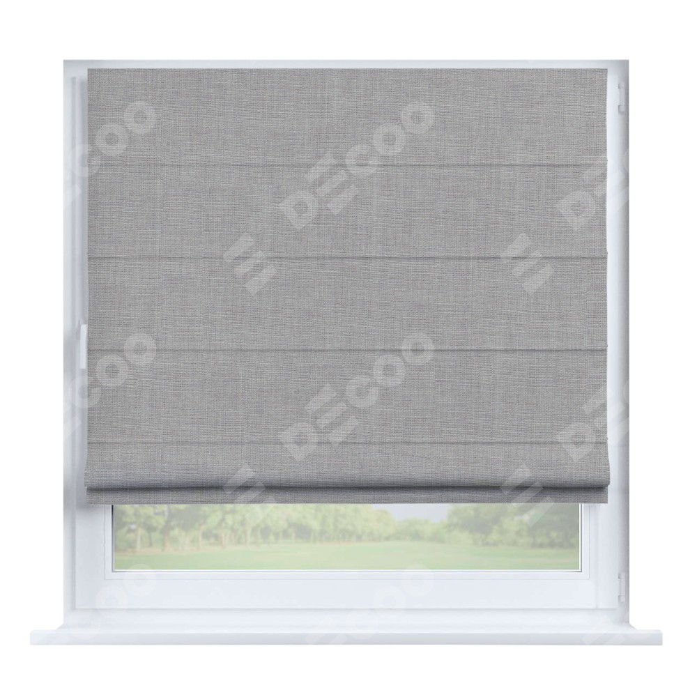 Римская штора производителя «Cortin», устанавливается на створку окна, пошита из ткани лён серый, артикул 91410. Штора шьётся по индивидуальным размерам, для данного типа римской шторы возможная ширина от 35 до 150 см., высота до 250 см.
