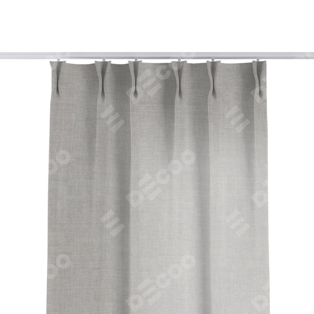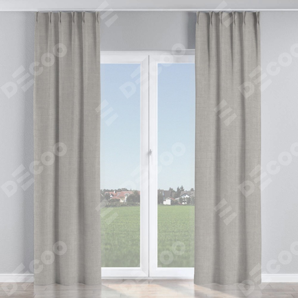 Комплект прямых штор, от производителя «Cortin», пошиты из ткани лён серый, артикул ткани 91410. С изнаночной стороны в верхней части штор пристрачивается шторная лента с декоративными складками «Кустик». Для создания элегантных складок прямые шторы шьются по стандарту с коэффициентом 1:2 (на 100 см. ширины проёма 200 см. ширины ткани).