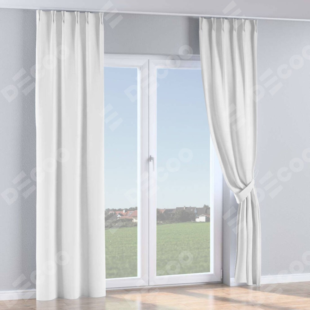Комплект прямых штор, от производителя «Cortin», пошиты из ткани вайтаут однотонная белая, артикул ткани 93935. С изнаночной стороны в верхней части штор пристрачивается шторная лента с декоративными складками «Кустик». Для создания элегантных складок рекомендуемый коэффициент 1:2 (на 100 см. ширины проёма 200 см. ширины ткани). Важно! Ширина штор указана без учёта коэффициента сборки!