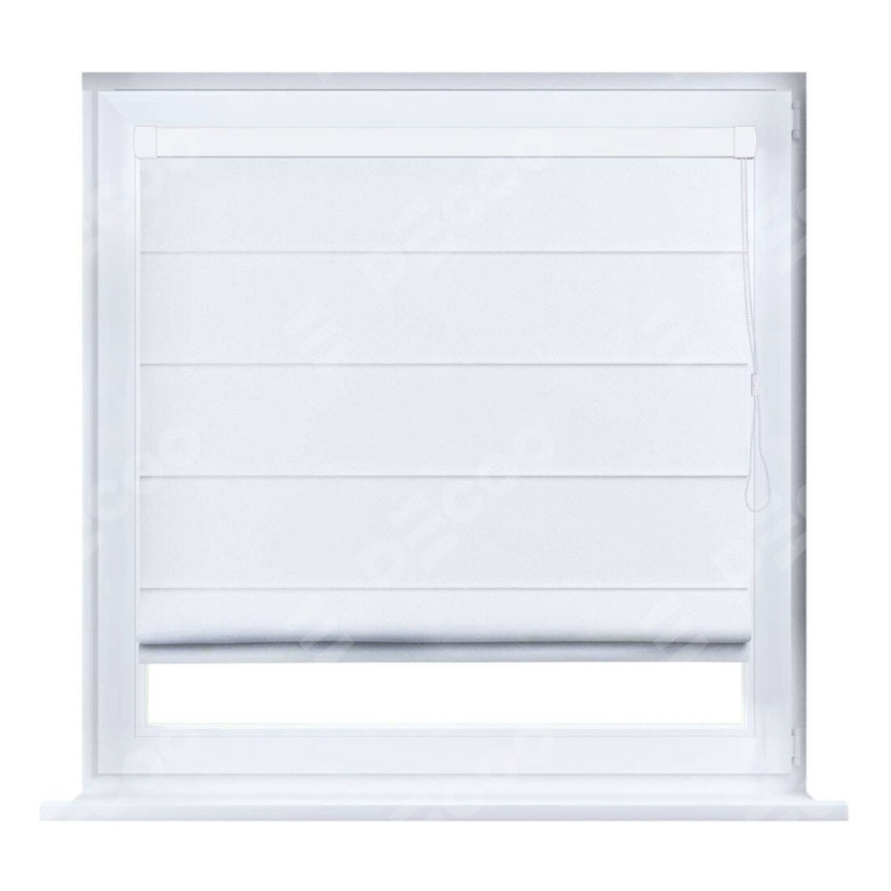Римская штора производителя «Cortin», устанавливается на створку окна, пошита из ткани лён димаут белый, артикул 28. Штора шьётся по индивидуальным размерам, для данного типа римской шторы возможная ширина от 35 до 150 см., высота до 250 см.