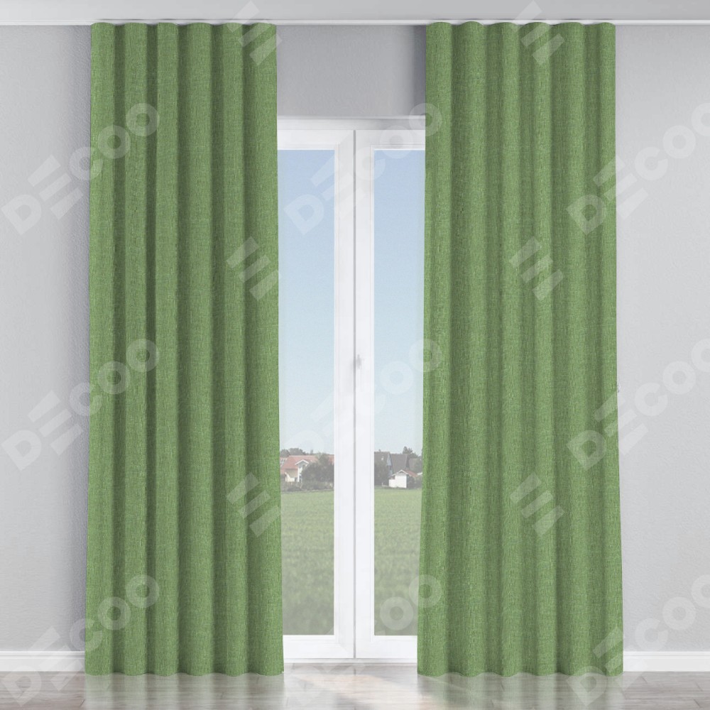 Комплект прямых штор, от производителя «Cortin», пошиты из ткани лён димаут светло-салатовый, артикул ткани 128528. С изнаночной стороны в верхней части штор пристрачивается шторная лента с декоративными складками «Волна». Для создания элегантных складок рекомендуемый коэффициент 1:2 (на 100 см. ширины проёма 200 см. ширины ткани). Важно! Ширина штор указана без учёта коэффициента сборки!