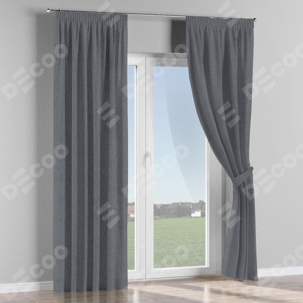 Комплект штор на тесьме «Карандаш», лён блэкаут тёмно-серый