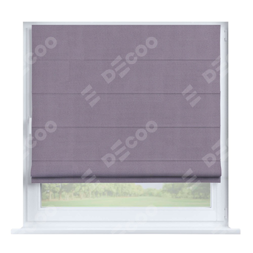 Римская штора производителя «Cortin», устанавливается на створку окна, пошита из ткани блэкаут однотонный лиловый, артикул 91577. Штора шьётся по индивидуальным размерам, для данного типа римской шторы возможная ширина от 35 до 150 см., высота до 250 см.