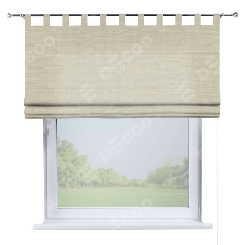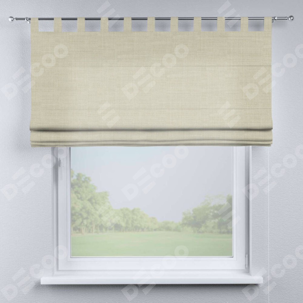 Римская штора производителя «Cortin», используется для проёма, пошита из ткани лён топлёное молоко, артикул ткани 104484. Данная модель пошита на петлях, комплектуется на выбор круглым карнизом и подходит для монтажа на стену. Римская штора на петлях имеет простую систему регулировки высоты, отличительным преимуществом данной модели является простой способ монтажа. Достаточно повесить ее на трубу и штора готова!