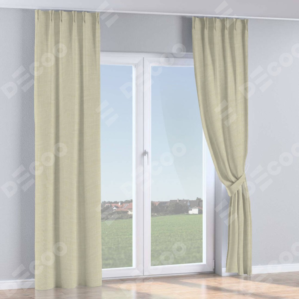 Комплект прямых штор, от производителя «Cortin», пошиты из ткани лён топлёное молоко, артикул ткани 104484. С изнаночной стороны в верхней части штор пристрачивается шторная лента с декоративными складками «Кустик». Для создания элегантных складок рекомендуемый коэффициент 1:2 (на 100 см. ширины проёма 200 см. ширины ткани). Важно! Ширина штор указана без учёта коэффициента сборки!