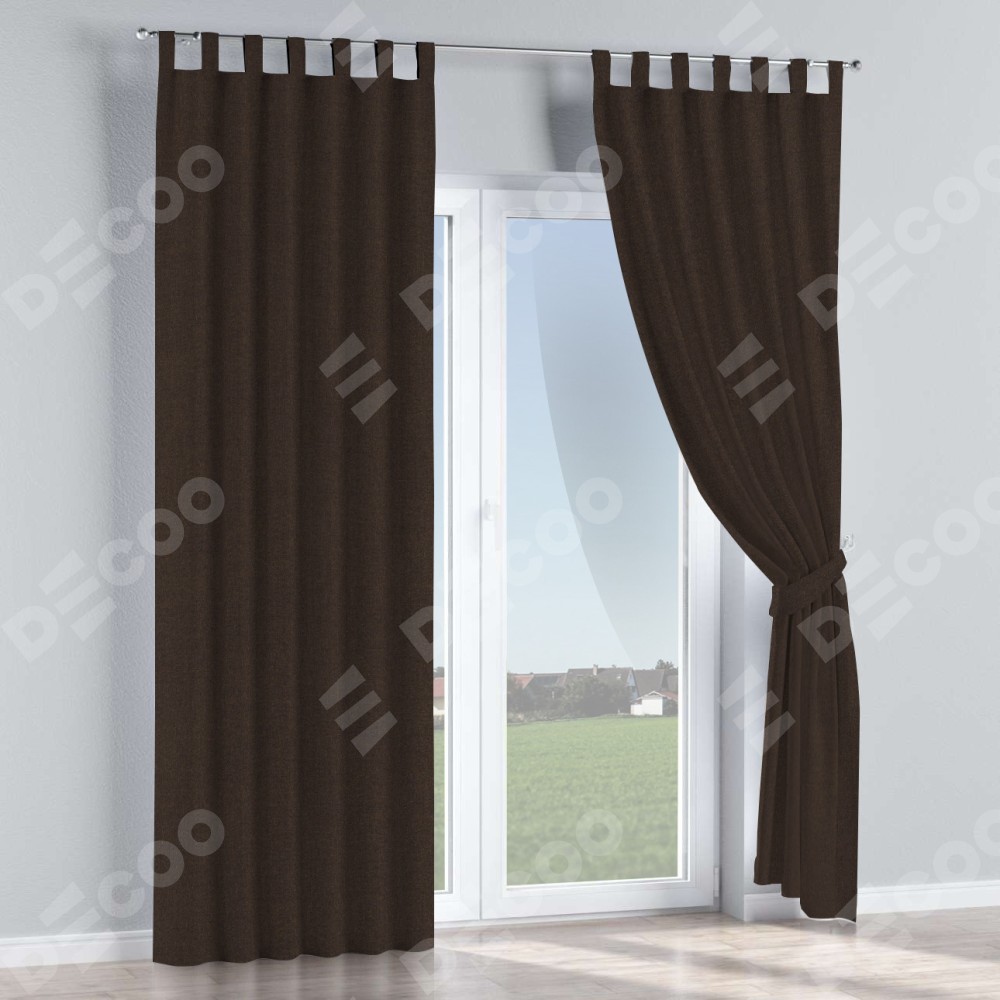 Комплект прямых штор, от производителя «Cortin», пошиты из ткани лён тёмно-коричневый, артикул ткани 104497. Данная модель пошита на петлях, комплектуется на выбор круглым карнизом и подходит для монтажа на стену или потолок. Для создания элегантных складок рекомендуемый коэффициент 1:2 (на 100 см. ширины проёма 200 см. ширины ткани). Важно! Ширина штор указана без учёта коэффициента сборки!