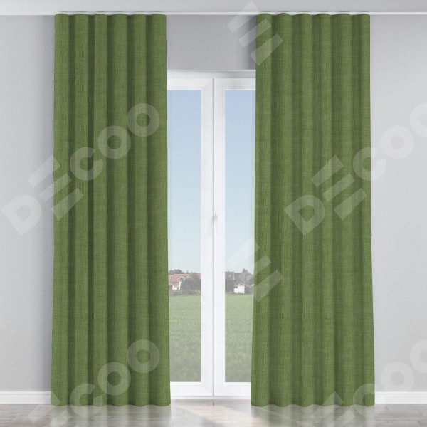 Комплект прямых штор, от производителя «Cortin», пошиты из ткани лён зелёный, артикул ткани 131547. С изнаночной стороны в верхней части штор пристрачивается шторная лента с декоративными складками «Волна». Для создания элегантных складок рекомендуемый коэффициент 1:2 (на 100 см. ширины проёма 200 см. ширины ткани). Важно! Ширина штор указана без учёта коэффициента сборки!
