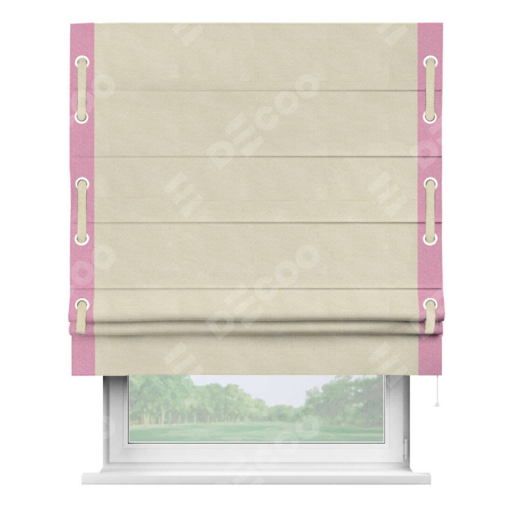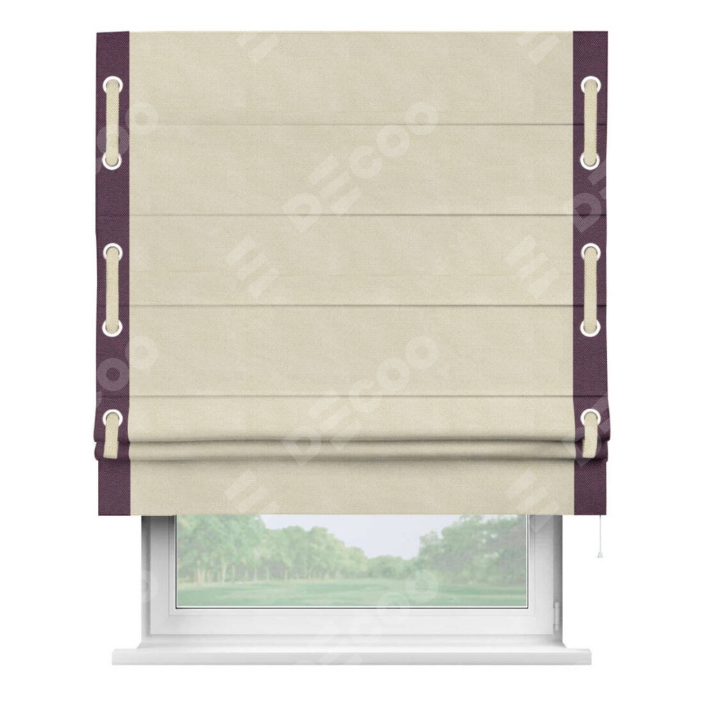 Римская штора «Кортин» с кантом Стрим Дуо (люверсы с пояском), для проема, ткань лён димаут, бежевый