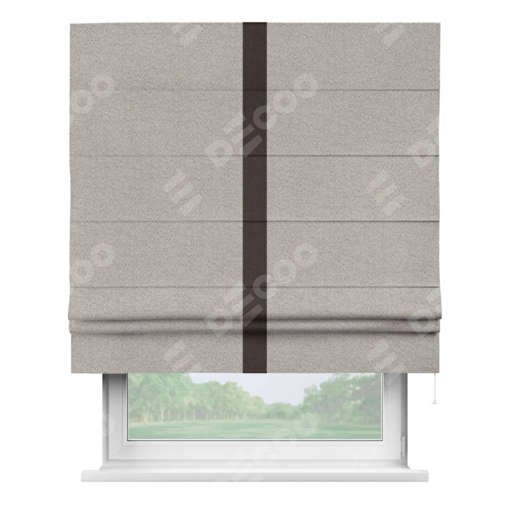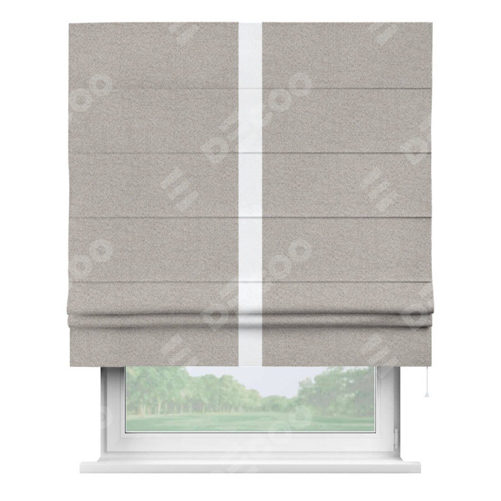 Римская штора «Кортин» для проема, лён димаут серо-бежевый с кантом Хайвэй