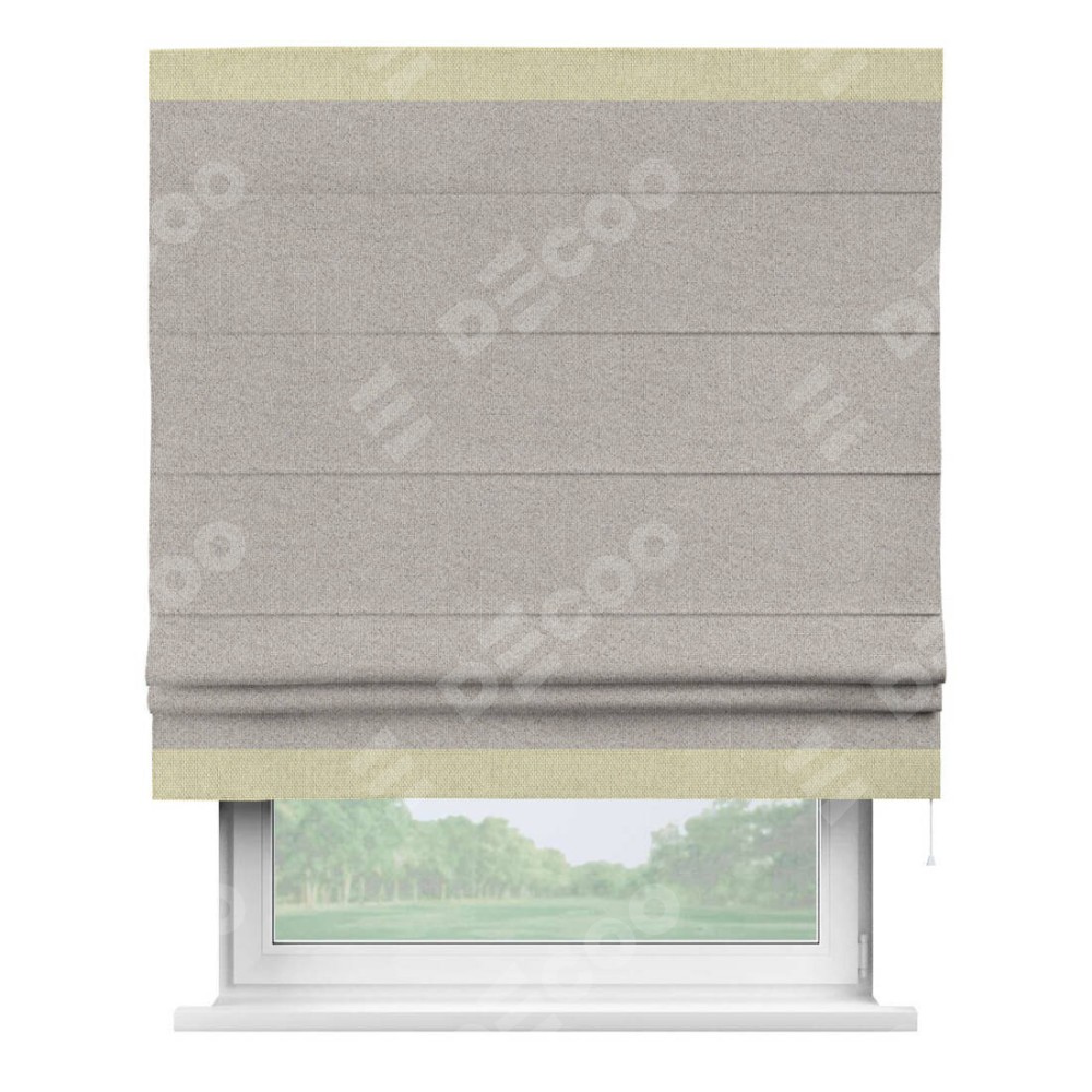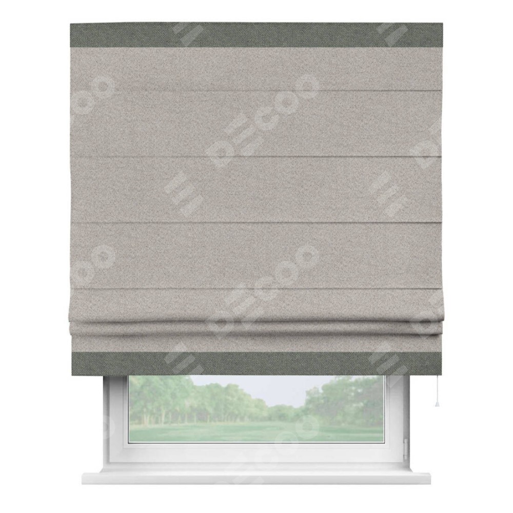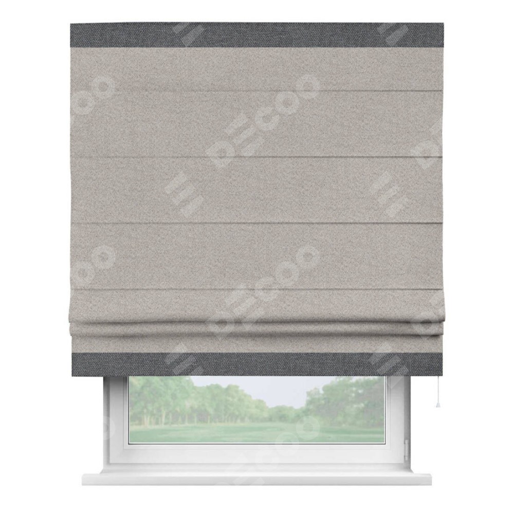 Римская штора «Кортин» для проема, лён димаут серо-бежевый с кантом Горизонт