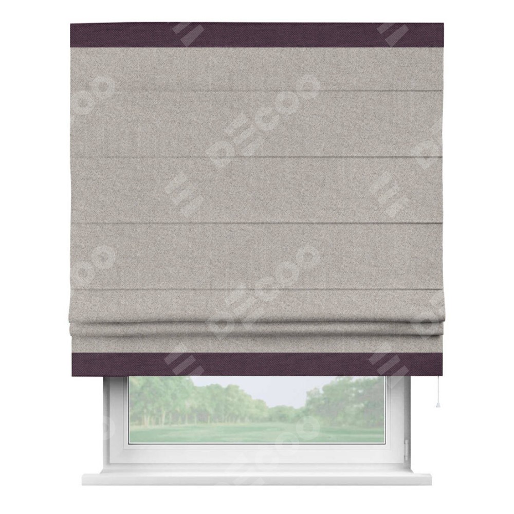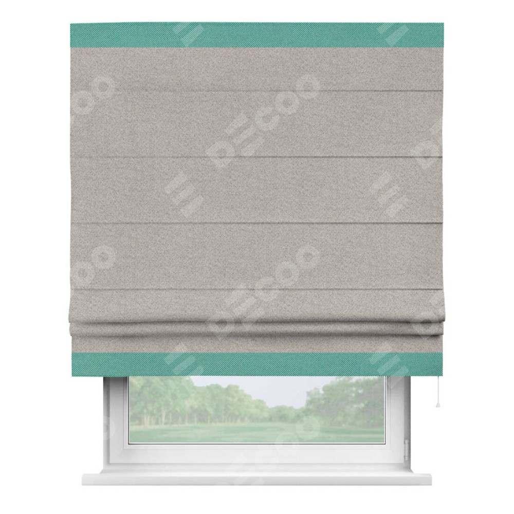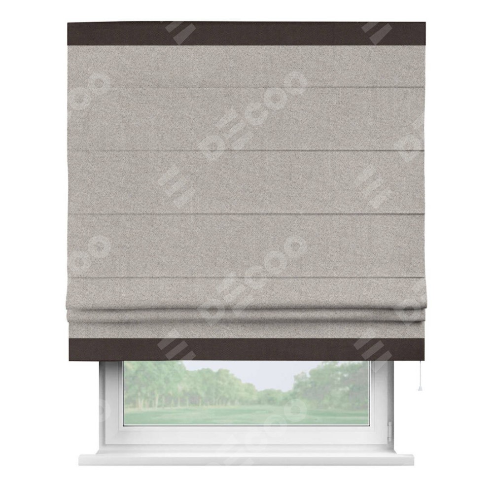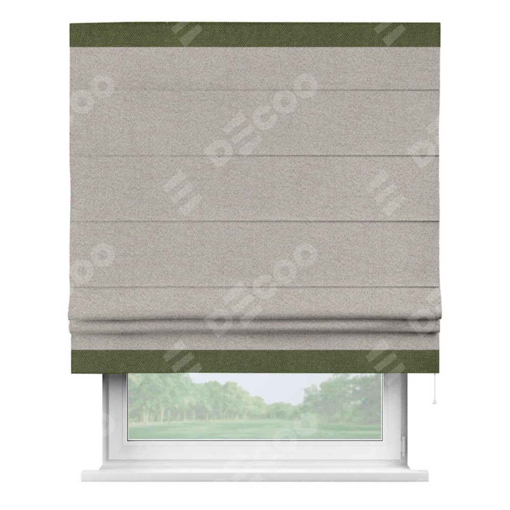 Римская штора «Кортин» для проема, лён димаут серо-бежевый с кантом Горизонт