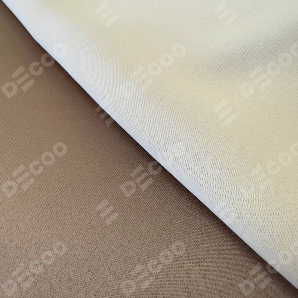 Двойная римская штора «День-ночь» от производителя Cortin предназначена для использования в проёмах. Эта штора уникальна тем, что состоит из двух полотен. На лицевой стороне находится однотонный блэкаут кофейно-бежевый (артикул: 91566−1), обеспечивающий эффективное затемнение. В комплект также входит вторая ткань — легкий белый тюль (артикул: V-01), который добавляет изящества и легкости оформлению окна. Кроме того, доступны и другие разновидности ткани тюль, выбор которых доступен по  ссылке .