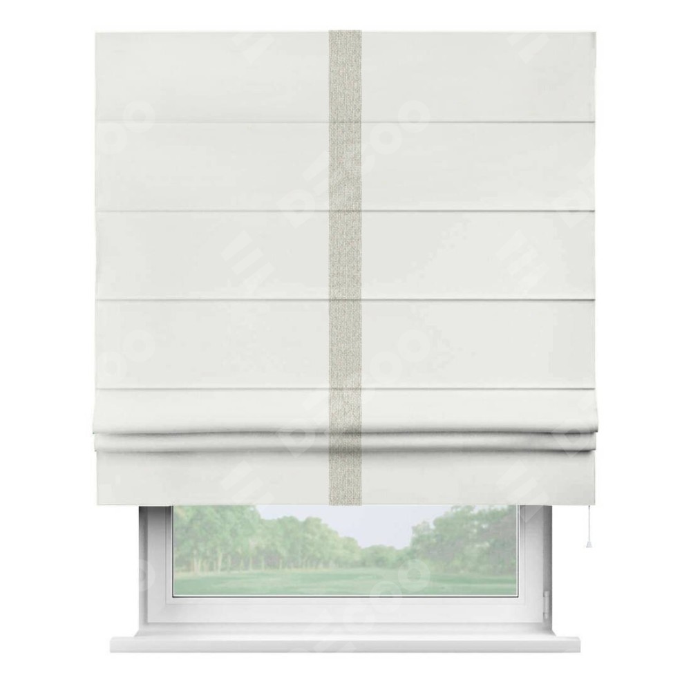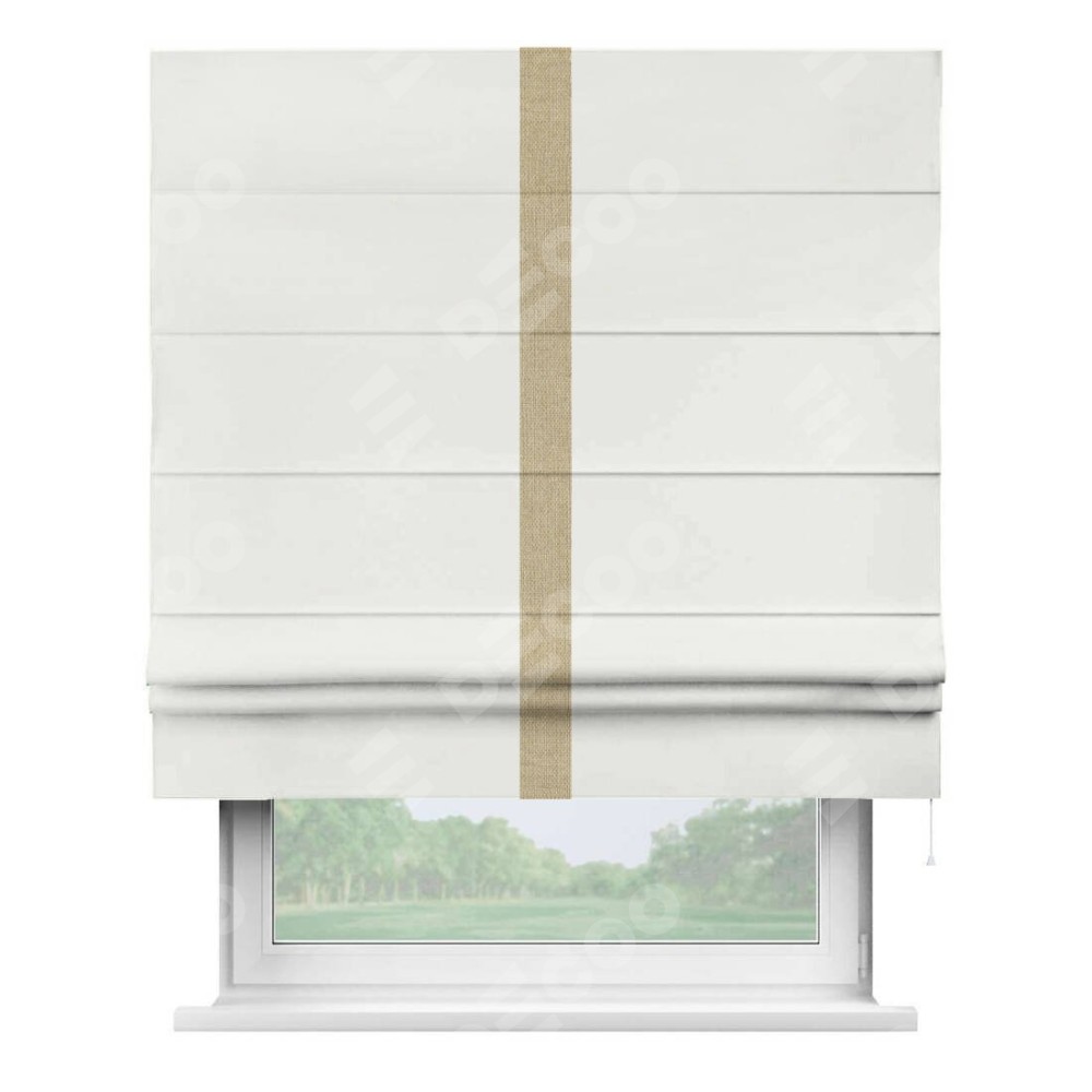 Римская штора «Кортин» для проема, лён димаут молочный с кантом Хайвэй