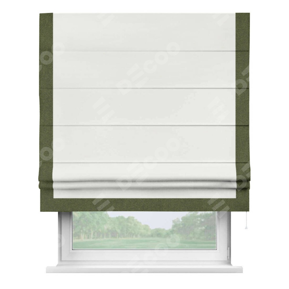 Римская штора «Кортин» для проема, лён димаут молочный с кантом Виктория