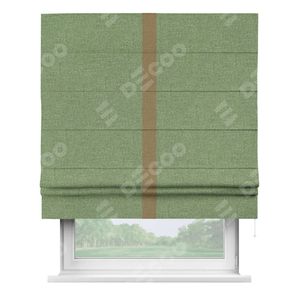 Римская штора «Cortin» для проёма, лён димаут светло-салатовый с кантом Хайвэй