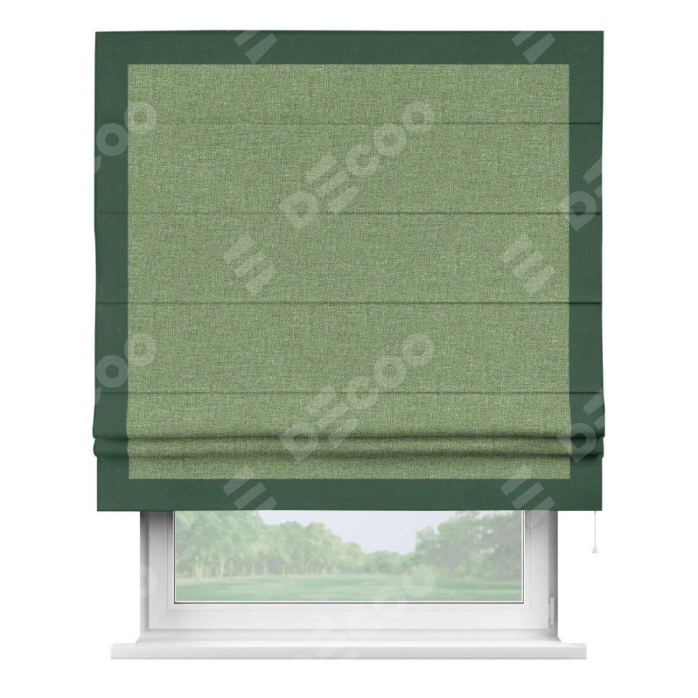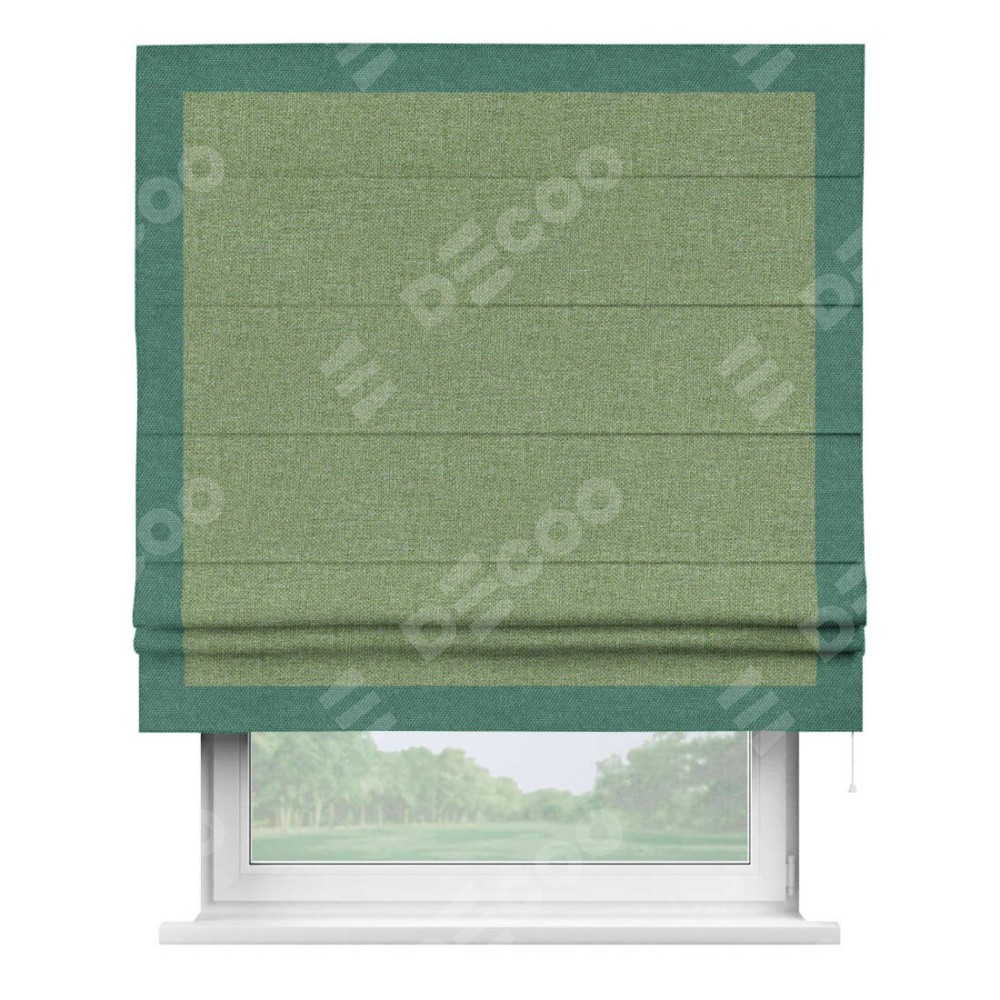 Римская штора «Cortin» для проёма, лён димаут светло-салатовый с кантом Чесс