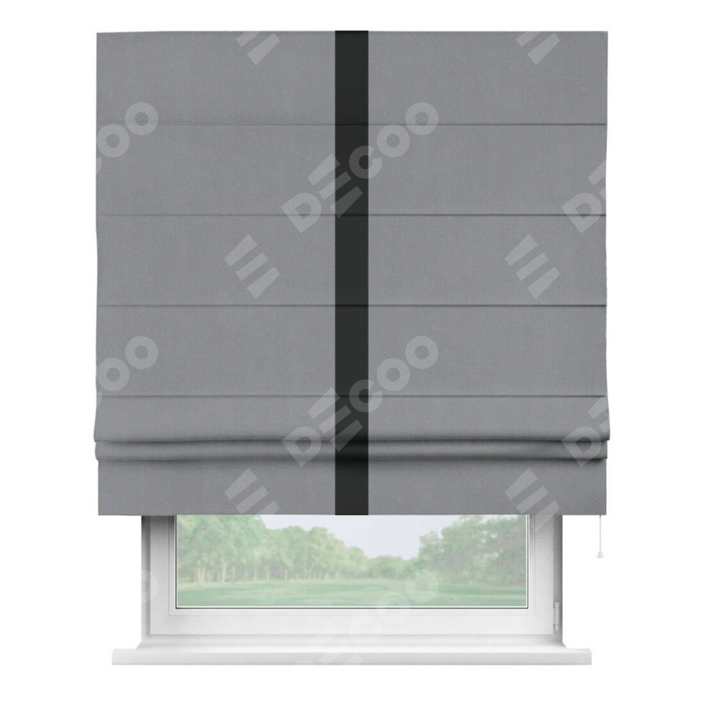 Римская штора «Кортин» для проема, блэкаут однотонный серый с кантом Хайвэй