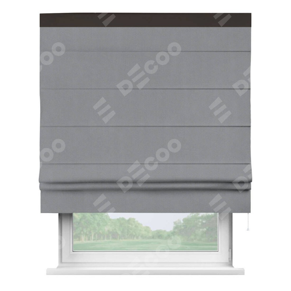 Классическая римская штора производителя «Cortin», пошита из ткани однотонный блэкаут серый, артикул: 146436. Имеет универсальный механизм и подходит для монтажа: на потолок, на стену и в нишу.