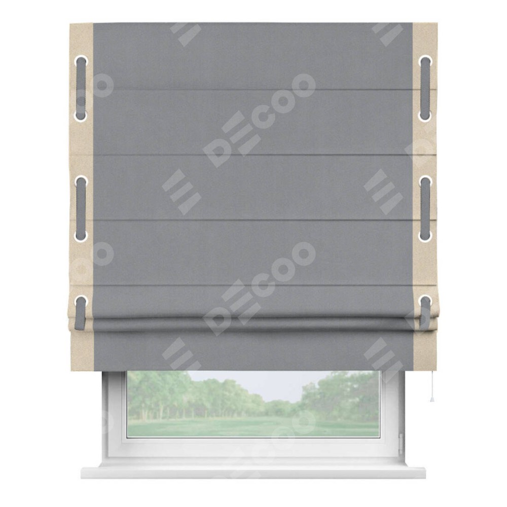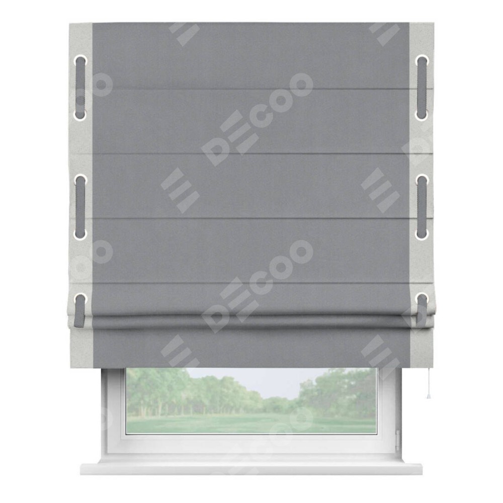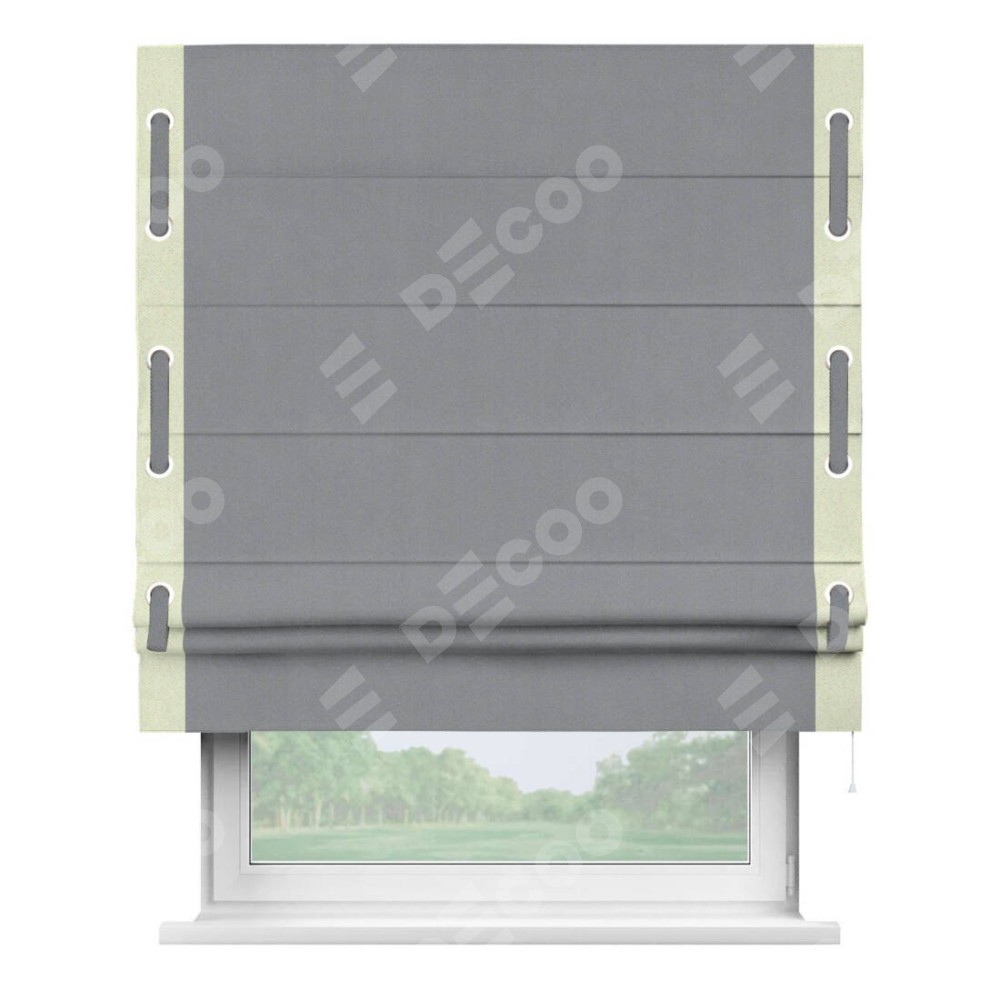 Римская штора «Кортин» для проема, блэкаут однотонный серый с кантом Стрим Дуо (люверсы с пояском)