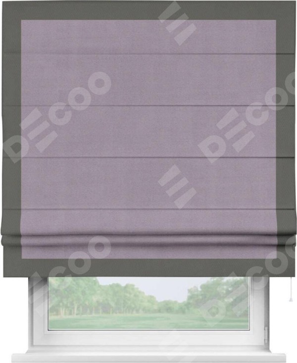 Римская штора «Кортин» для проёма, блэкаут однотонный лиловый с кантом Чесс