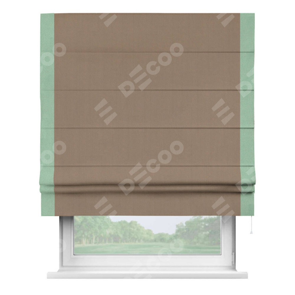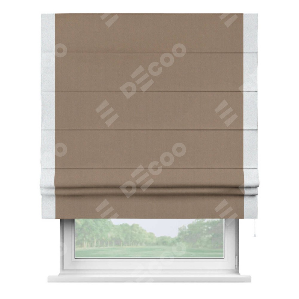 Римская штора «Cortin» для проёма, ткань блэкаут однотонный кофейно-бежевый с кантом Стрим Дуо